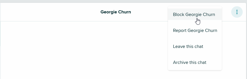 Members can block another user by tapping the three dots icon in the top right of the chat screen with that user.